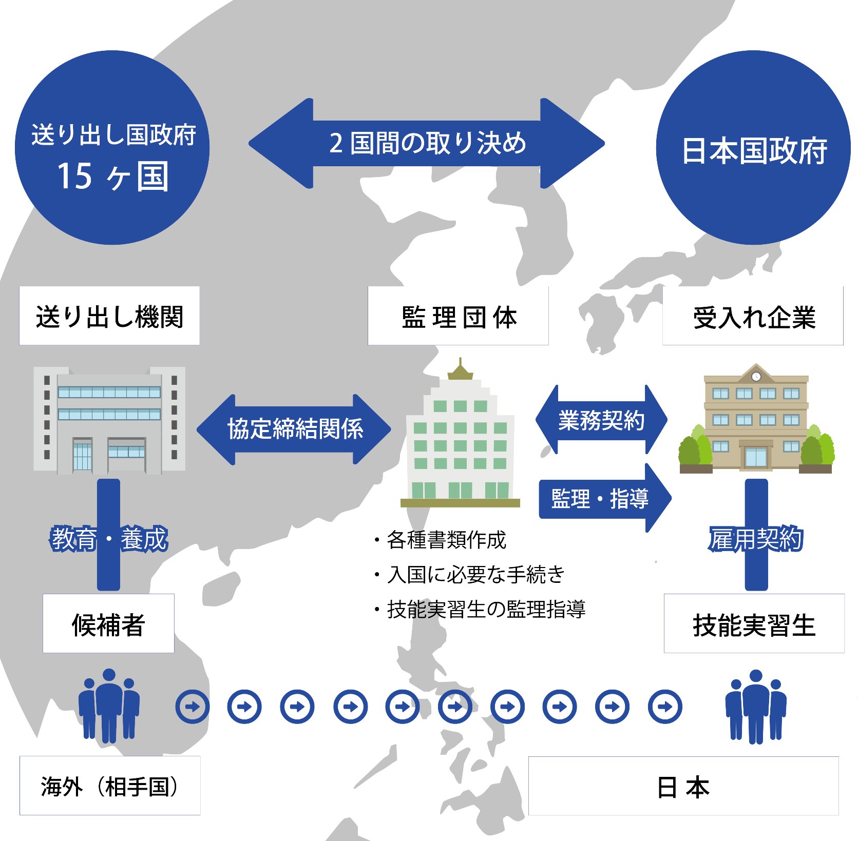 海外の送り出し機関から技能実習生の受入れる流れをカンタン解説!