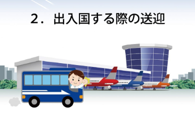 帰国時に空港の保安検査場までの送迎、同行を行います。