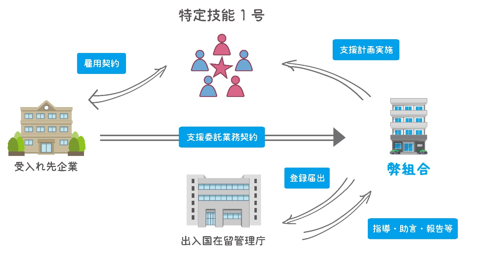 支援計画を作成したり、特定技能1号の活動を安定的・円滑に行うことを支援する機関です。